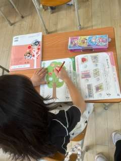 うまれたてのいのちの学習をしました。赤ちゃんや鳥、植物などのうまれたての写真を見て、どんな言葉をかけるのかをみんなで考えました。その後、手のひらを自分の心臓にあて、音を聞き、みんな生きているんだということを感じでもらいました。今まで動物や植物などのあかちゃんを見かけたことがあったらりんごに色をぬり、りんごの木を完成させました!