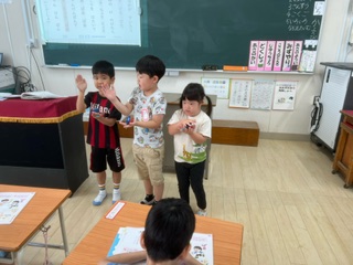 音楽の時間に、うたにあわせてカスタネットを使い、リズムうちをしました。じゃんけんぽんは、たん、たん、たん、うんのリズムで、みんなであそぼうは、たん、たん、たん、たん、たん、たん、たん、うんのリズムで、持ち方やうち方に気をつけながらカスタネットでうつことができました!