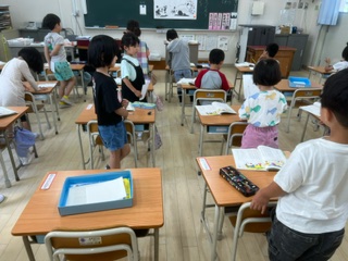 あひるのあくびの学習をしました。あ、い、う、え、おの口の形を意識して、音読をしました。あひるのあくびはあいうえおを真似して、色々な言葉を使い、「たこさんたいへんたちつてと」や「まりちゃんまつりだまみむめも」、「らくだでらくちんらりるれろ」など、自分たちでつくり、発表することができました!