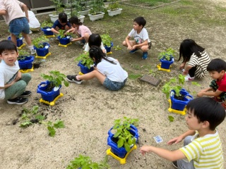 あさがおの間引きをしました。元気のいいものを数本選んでぬき、3本だけ残す作業をしました。あさがおもぐんぐん大きくなっています。水やりを忘れずに大切に育てて欲しいです!