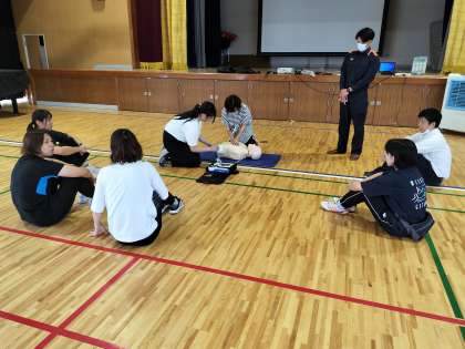 いつでも、どこでも、尊い生命を救うために、正しい一次救命処置(心肺蘇生とAEDの使用)を学びました。プール水泳の授業もスタートしました。起こってはいけないことですが、いざという時のための訓練です。