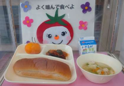 みかん(冷)、黒糖パン、牛乳
