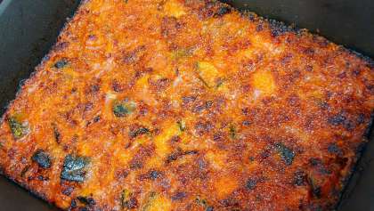 かぼちゃのミートグラタン、鶏肉と野菜のスープ