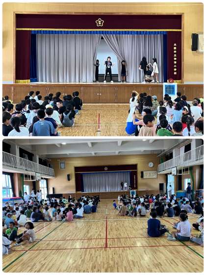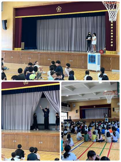 今日の児童集会では、カーテンの後ろで先生がしゃべって、誰がしゃべったかを当てるゲームでした。なかなか難しく、子どもたちからは、「えー、違う」や「あの先生やったんや」という声が聞かれました。