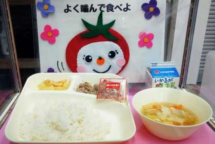 今日の給食は、にがうり(ゴーヤ)を使った「ゴーヤチャンプルー」です。
