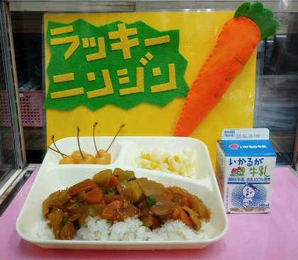 今日は、調理員さんが、ラッキーにんじんを作って下さいました。