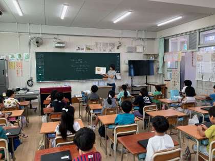 今日「絵本のくに」の方がきてくれて、絵本を読んでくれました。とても楽しい絵本でした。毎週楽しみにしています。
