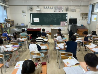 サラダでげんきの学習をしています。りっちゃんがおかあさんのために作っている、元気になるサラダの中身をみんなで確認しました。「おいしそうなサラダになってきた。」と言って、ノートにサラダを書いていました!