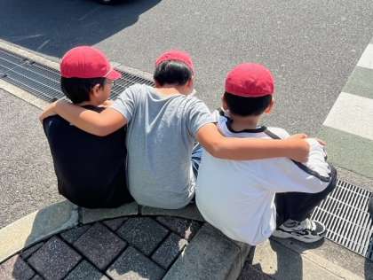 朝が早かったので、音楽を聞きながら一眠りする子も多かったです。しっかり体を伸ばして休憩しました。 ゴールまであと少し!