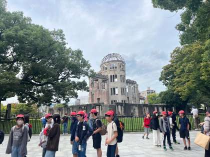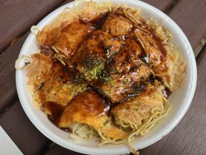 です。みんな、朝早かったのでお腹ぺこぺこの様です。ボリュームたっぷりの広島風お好み焼き、いただきます!