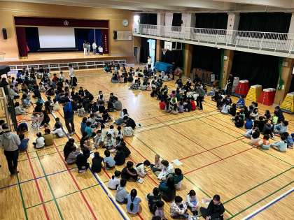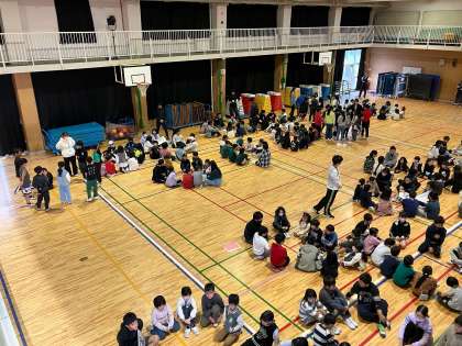 今日の児童集会は「モッツァレラチーズゲーム」でした。このゲームは、1人目より2人目、2人目より3人目のほうが、声が大きく、テンションも高くしていくゲームです。どの班も1人目は声も小さく、テンションも低めでしたが、最後は、とても声が大きく、テンションも高くなっていました。との班も楽しそうにゲームしていました。次の集会も楽しみです。