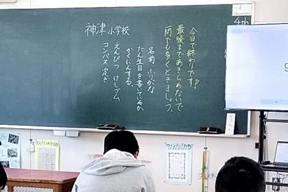 教室の黒板に、「最後まであきらめないで、一問でも多くがんばるように」と書かれていました。