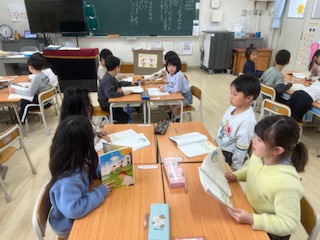 おとうとねずみチロの学習をしました。音読発表会にむけて、班で声の大きさや読むはやさ、読み方を工夫して読む練習をしました。