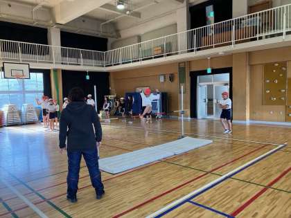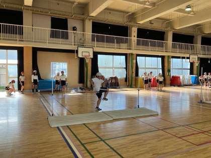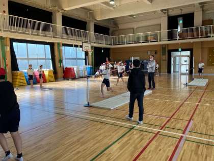 体育科の学習で、「走り高跳び」をしています。跳べた時は「オー」や「ヤッター」という歓声があり、跳べなかった時も「おしい」など、声かけも素晴らしく、見ていて気持ちが良かったです。