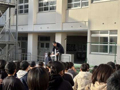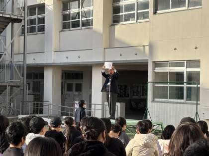 今日の全校朝会の校長先生のお話は、「今年の漢字」についてでした。今年の漢字は「金」です。夏に開かれたパリオリンピック、パラリンピックでの金メダル獲得。そして、物価高などのお金こと。などてすね。