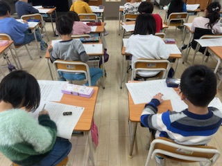 おはなしをかこうの学習をしました。「うらしまたろう」や「かぐやひめ」のような、「〇〇たろう」や「〇〇ひめ」と主人公の名前を決め、お話しを考えました。お話の結末では、「こおりひめと結婚して幸せになりました。」や「お金持ちになって豪邸を買いました。」など色々なお話が完成しました!