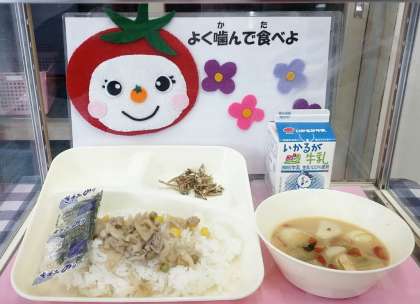 ◎ぞう煮も行事食です。今日のぞう煮に使われている金時にんじんは、なにわの伝統野菜の一つです。
