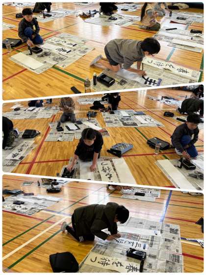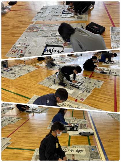 今日は1組、2組合同で書き初めをしました。「春を待つ」を書きました。どうしても春が大きくなってしまい、バランスをとるのが難しかったようですが、全員が全力で頑張りました!一年に一回しかしない、縦4文字の毛筆は難しいですが、4月には書けなかった素晴らしい字になっていました。飾るのが楽しみです!