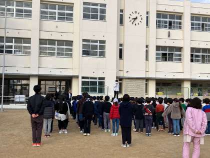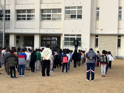 今日の全校朝会では、校長先生から2つのお話をしていただきました。