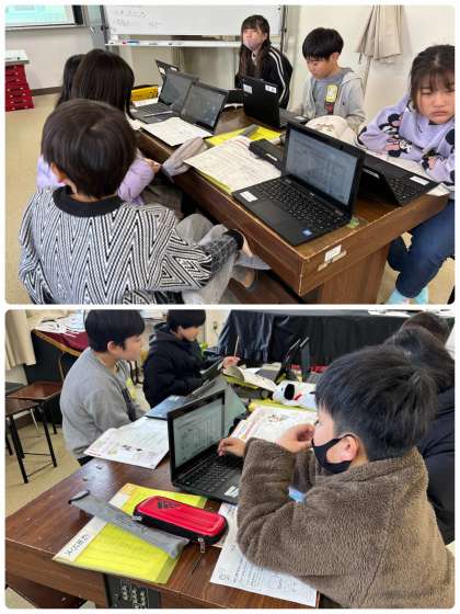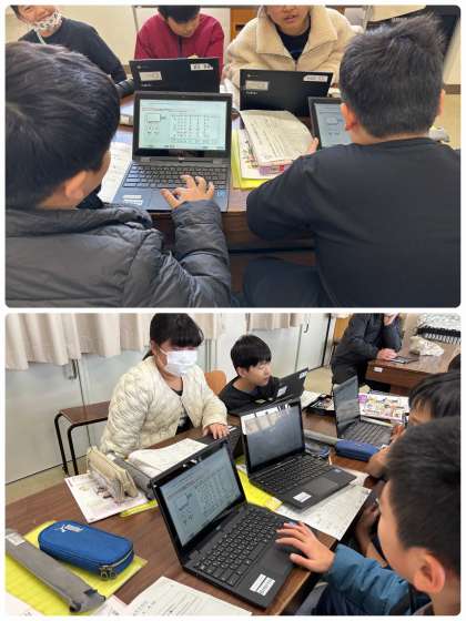 今日の音楽の学習では、「さくらさくら」の音階を使って旋律づくりをしました。タブレットを使ってデジタルコンテンツでオリジナルの旋律を作り、交流しました。気軽に聞きながら作れて、楽しんで作ることができました。新年にふさわしい音楽を作りましたなどとそれぞれの工夫があって、おもしろかったです!