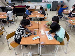 わくわくスタートに向けて看板作りをしました。チームごとにわかれて、こまやけん玉などの絵を描きました。木曜日のわくわくスタートが楽しみな様子でした!