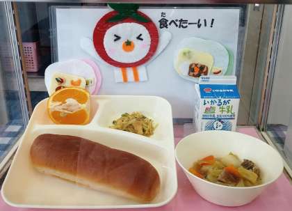 →給食では、牛肉やウインナー、じゃがいも、キャベツ、にんじん、パセリを使っています。