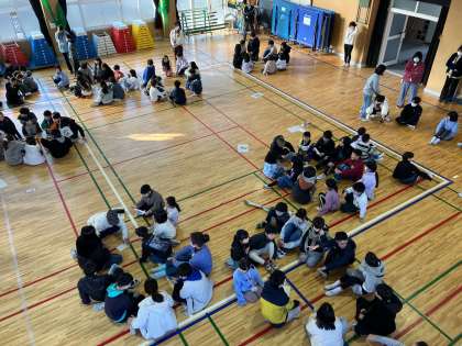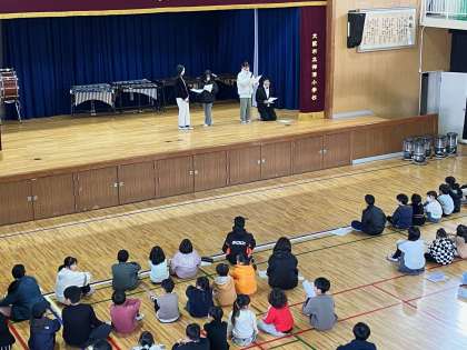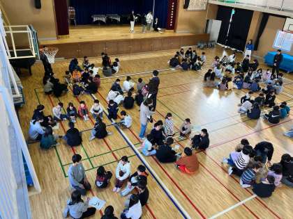 今日の児童集会は、「さかさことばあて」でした。さかさに言われた言葉は何と言っているでしょうか?というクイズです。例えば、「だんぱ」は?「ぱんだ」というように答えます。グループで円になってみんなで考えて答えます?どのグループもみんなで考えて答えていました。