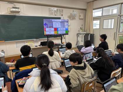 今日は参観でよく頑張った子どもたちのために、1組も2組もkahoot大会を開きました!タブレット端末を使用した早押しクイズ大会みたいなものです。