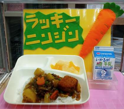 今日の給食は、みなさんが小学生になったお祝いのこんだてです。