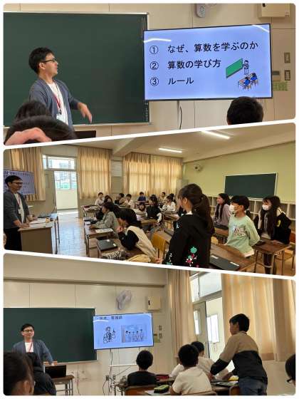 今日から算数の学習もスタートしました!5年生では専科の先生に教えてもらうことになりました。初めは、先生の自己紹介をクイズ形式で行い、子どもたちも自己紹介をしました。そして、算数を学ぶ意味やルールについて確認しました。