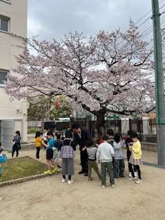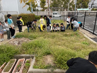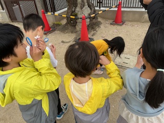 今日は虫眼鏡を使って、さくらの花びらやアブラナを観察しました。