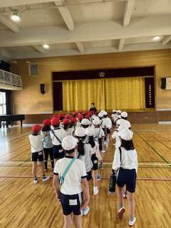 その後、背の順や2列や4列の並び方を指導します。しっかり覚えましょうね!