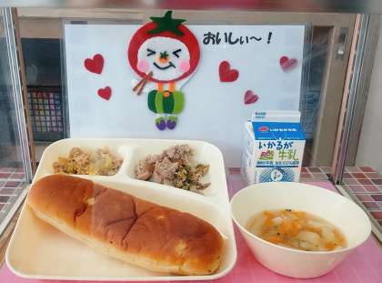 給食は、3つのグループの食べ物がバランスよくそろっています。
