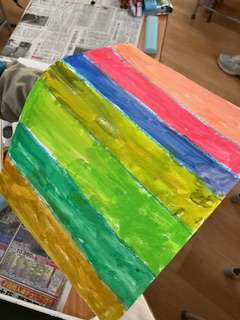クレパスと絵の具をつかって、上手に塗りました。