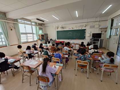 一年生が嬉しくなるようなメッセージをクラスで出し合い、ペアになる一年生に向けてのメッセージを書くことができました!