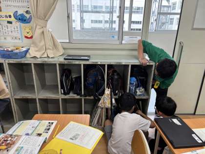 > 今日の家庭科の学習では、整理整頓について学習しました。自分の経験を思い出し、散らかっていて困ったことを発表しました。そして教科書の写真の散らかった部屋を見て、問題点や困った点を話し合いました。そして整理整とんの意味を知り、実際に後ろのロッカーを整理整とんしました。これからも綺麗に保ちたいですね!