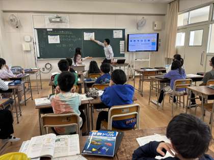 直方体と立方体の体積の学習をしています。今回は、変わった形の図形の体積を求める学習でした。2つに分けたり、後から引いたりして自分に合った方法で図形の体積を求めていきました。数が大きくなると計算が難しくなるので、計算ミスがないようにしたいですね!