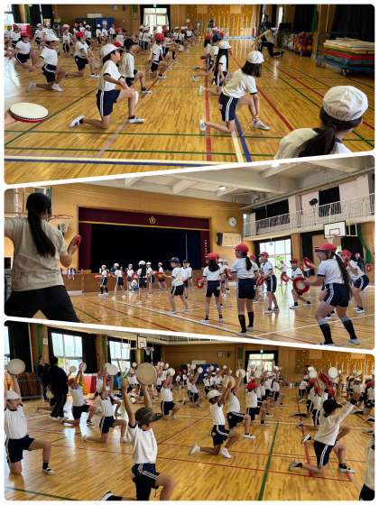 今日から5.6年生合同で運動会の団体演技のエイサーの練習がスタートしました!!!神津体操から始まり、まず6年生がお手本を見せてくれました。その後、3つの約束を確認してから本格的に練習がスタートしました。