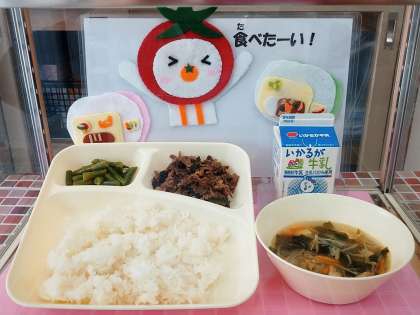 →今日の給食では、「さんどまめのナムル」が出ました。
