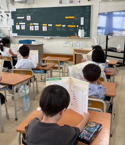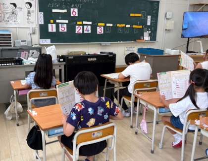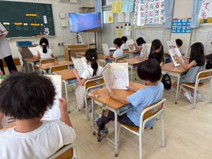 教科書をつかって、声にだしてよんだり書いたりしながら