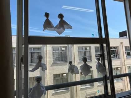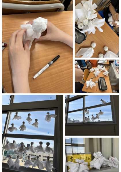 本日図工で、運動会の日が晴れることを祈って「てるてる坊主」作りを行いました。