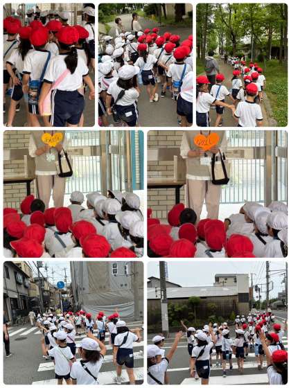 おうだんほどうでは手をあげてわたったり、友だちと手をつなぎ声をかけあってならんで歩いたりと、さいごまでなかよくあんぜんにかえってくることができました!