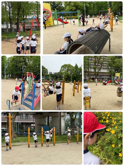 お楽しみのあそび時間には、みんなでなかよく元気いっぱい遊具であそぶことができました♪