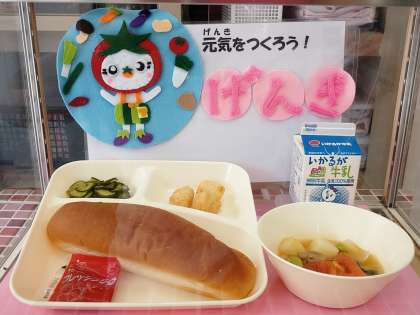→今日の給食では、「きゅうりのバジル風味サラダ」にかんそうバジルを使っています。