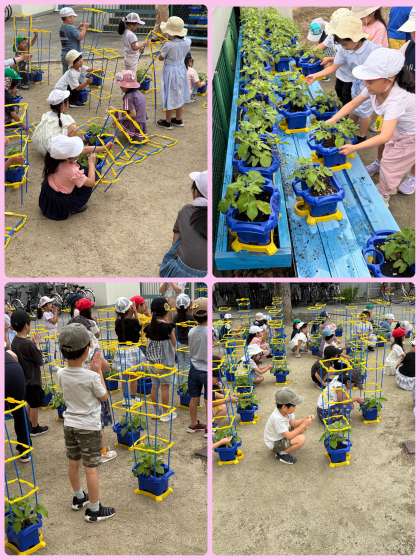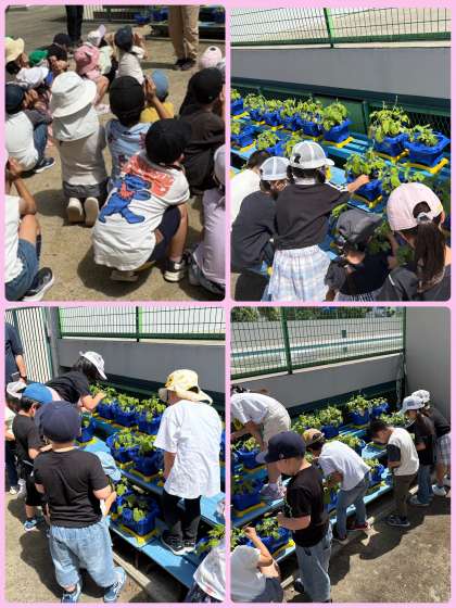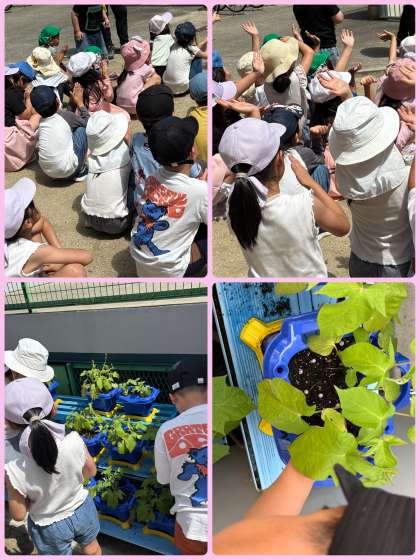 『芽がでて、本葉がでて、葉が5・6枚になって、つるがのびて〜』