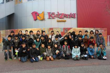 2月5日、6年生は卒業遠足です。行先はキッザニア甲子園です。キッザニアとは「子どもの国」という意味だそうです。キッザニア甲子園は職業体験型テーマパークで、いろいろな職業を体験し学ぶことができる施設です。まずは集合写真をパチリ!