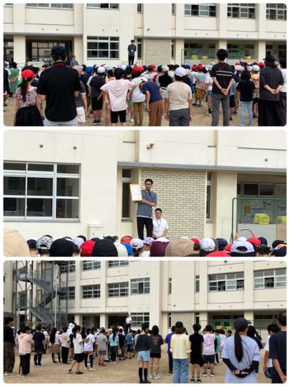 今日の全校朝会は、「梅雨」のお話でした。先週梅雨入りしましたが、今週はとても暑い日が続くという予報です。じめじめしていやな季節ですが、今週からプール水泳も始まります。先生のお話をしっかり聞いて、安全に楽しくプールに入ってほしいと思います。