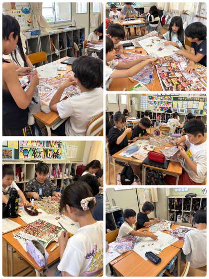 ちらしを切り取り白地図にどんどん貼っていきました。そして、調べてわかったことや気づいたことをグループで考え、共有しました!大阪のスーパーには、九州の野菜が多いや国内産の水産物は少ないなど、さまざまな意見が出ました!