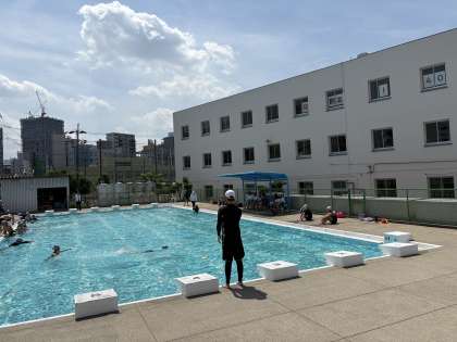 子どもたちの楽しそうな声が、プールからきこえてきます♪