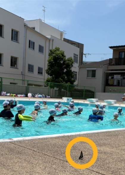 《楽しそうな子どもたちの声に、アゲハチョウもプールサイドに見学にきていました♪》